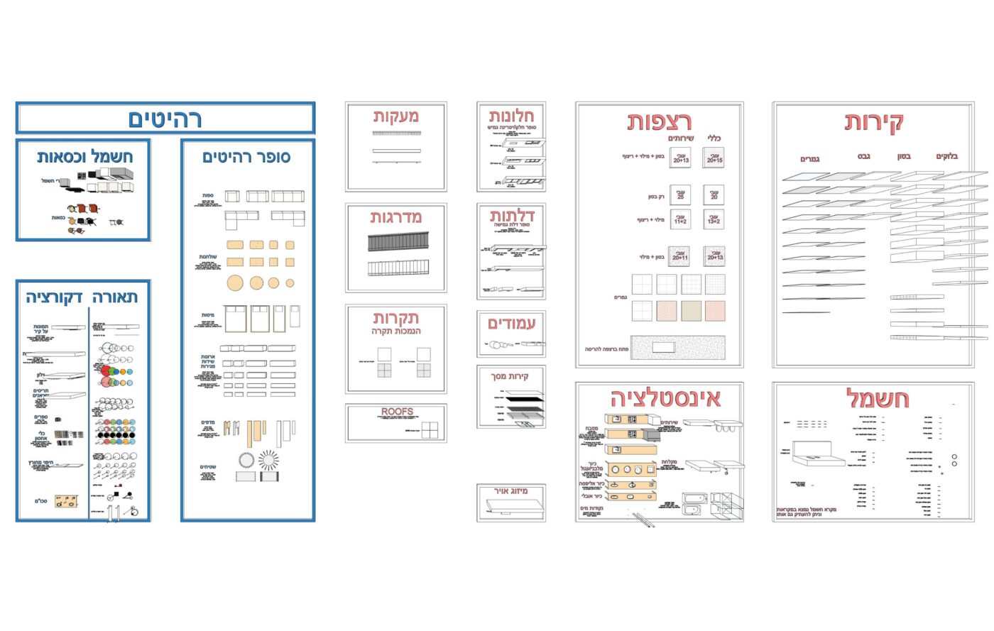 - מידות, קווים, טקסטים, סימני גובה, האטצ'ים וסימנים מוכנים לכל שימוש ועוד המון הכנות מראש לכל שימוש