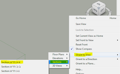 | כפתור ימני על הקוביה בצד ימין למעלה>SECTIONS>ORIENT TO VIEW ולבחור את החתך הרצוי. |